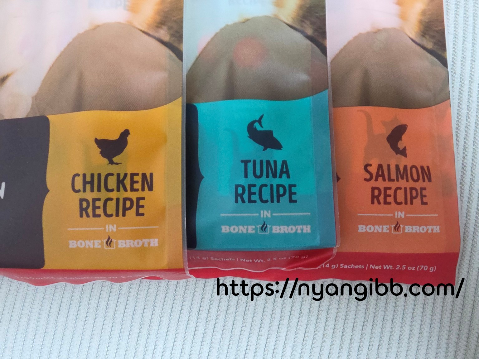사진에서 보이는 것처럼 치킨, 참치, 연어 맛이 색상으로 명확히 구분된다.